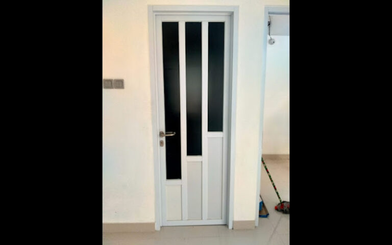 Jual pintu aluminium minimalis dengan panel kaca, acp, spandril – Untuk Pintu Toko, Kantor, Taman, Kamar Mandi – Model Lipat, Geser sliding.